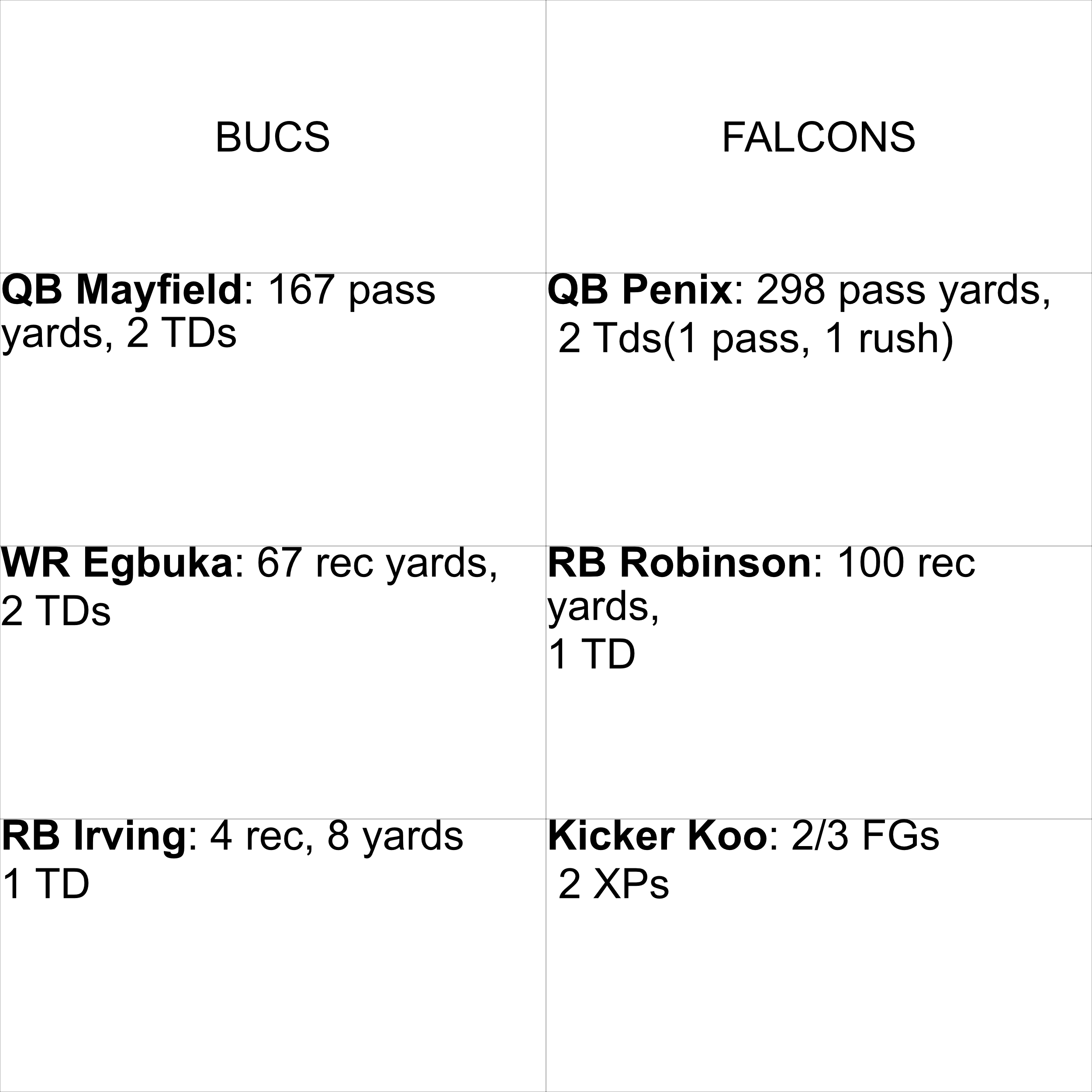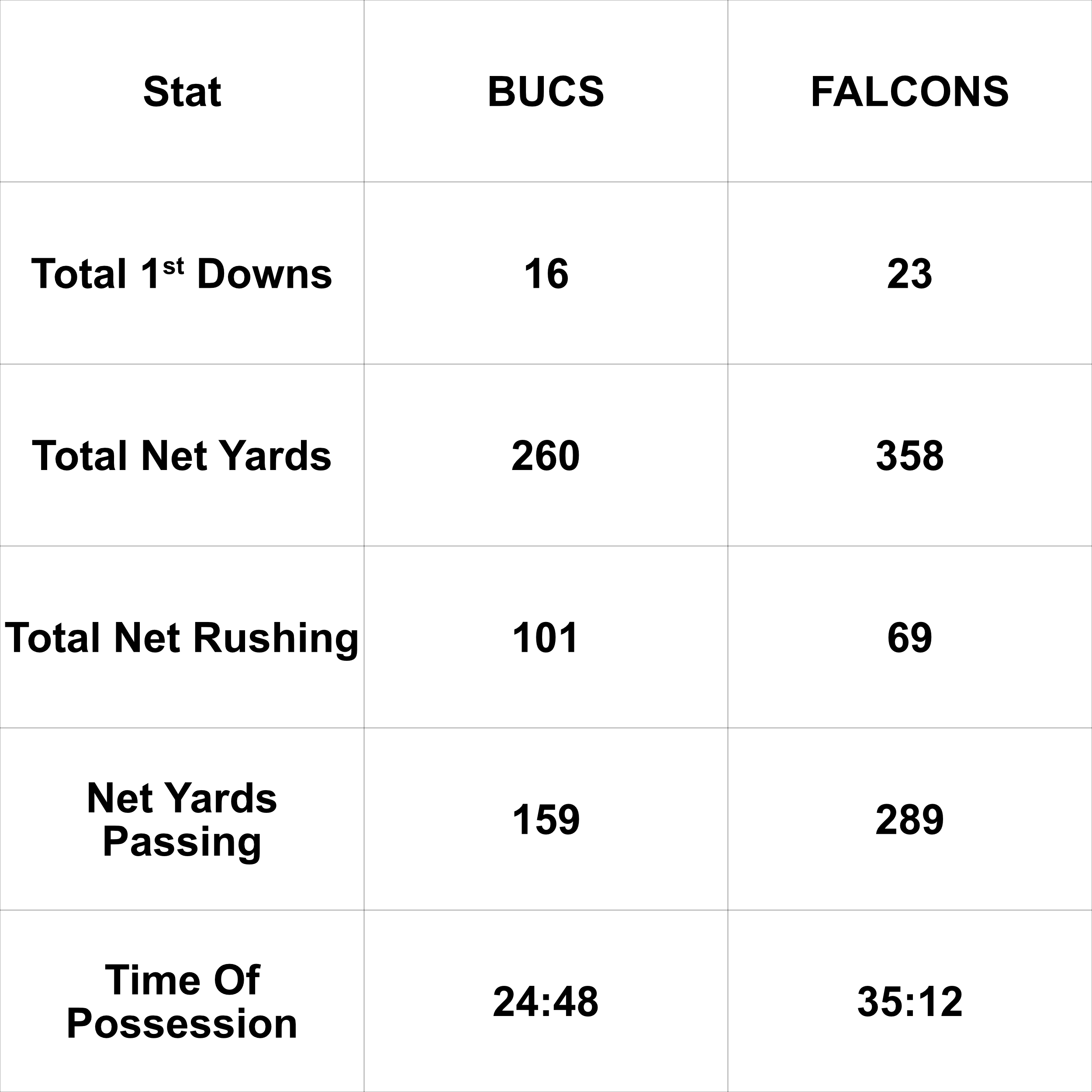 While the Falcons held the advantage in first downs, total yards, and time of possession, the scoreboard tells the ultimate story: the Buccaneers made the decisive plays when it mattered most, snatching a victory on the road.